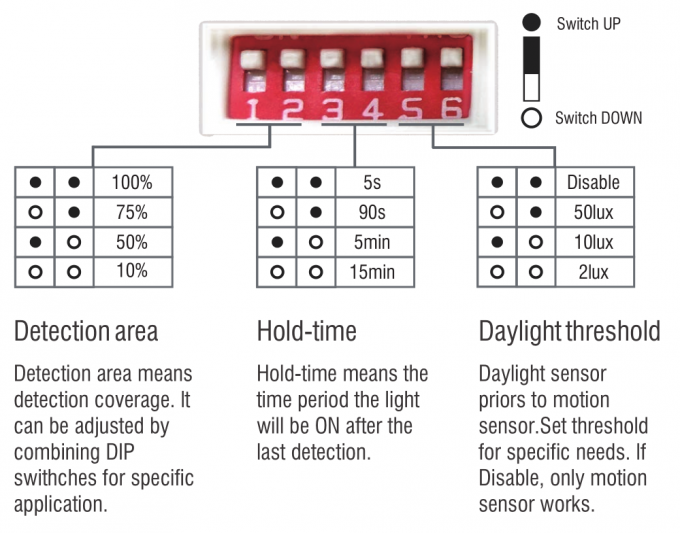 عتبة ضوء النهار | 2 لوكس/10 لوكس/50 لوكس/تعطيل |