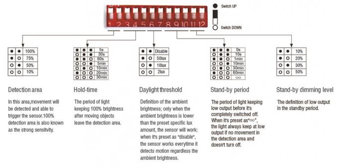 مستشعر PIR IP65 12 فولت تيار مستمر مع وظيفة أولوية ضوء النهار ديزملا أرقا