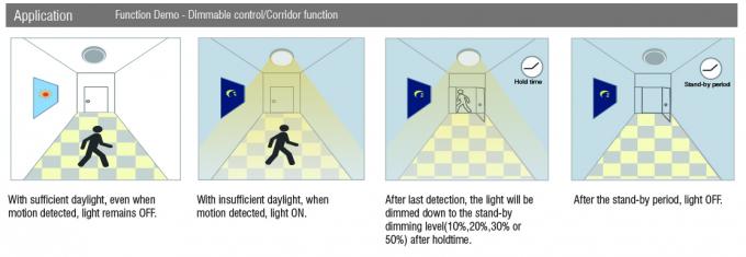 مستشعر حركة الميكروويف النهاري القابل للتعتيم يعمل بجهد 120-277 فولت تيار متردديلاتلا: